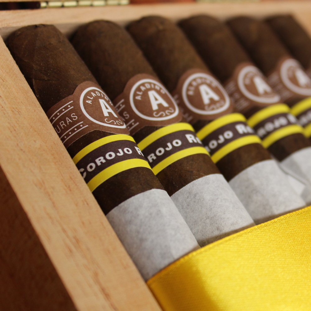 Aladino embodies every word in that phrase. This cigar is a "Puro" of authentic corojo grown in the JRE Tobacco Farm in Honduras from original Cuban seed of Corojo.