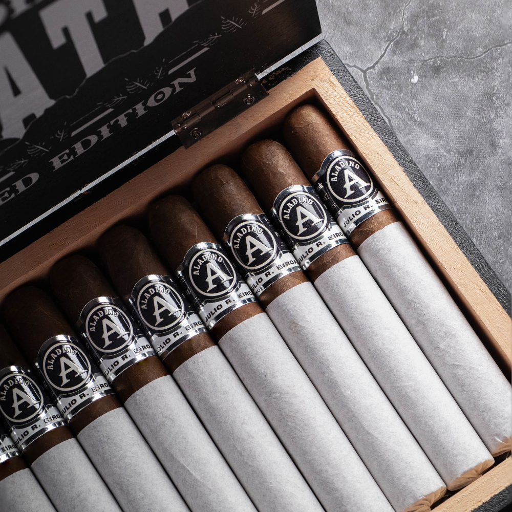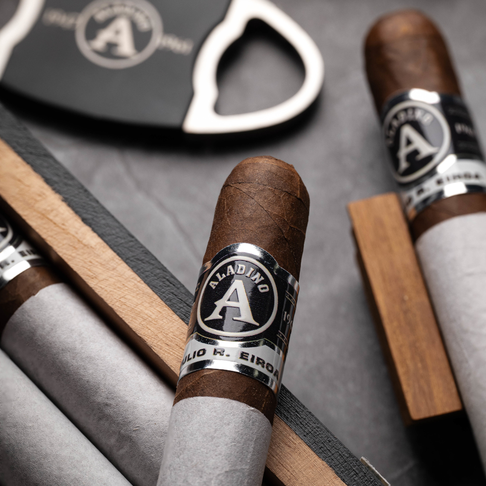 Aladino Sumatra shines light on a younger side to Aladino. With the fourth generation getting more involved, a more modern play on box design felt like a natural progression for the brand, while keeping the traditional Aladino band and elegant presentation. This is the first Aladino cigar blend that does not have the iconic Aladino image in the inside of the box.