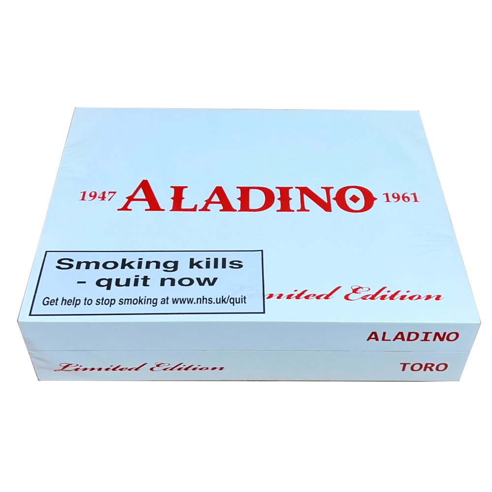 The cigars themselves are adorned with two bands, the top showcasing the classic Aladino branding and the bottom exhibiting the 'Limited Edition' uniqueness.