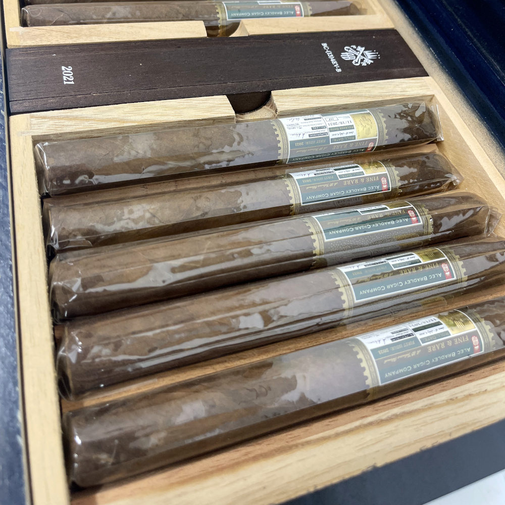 "Fine & Rare is an ever evolving project. It is a concept more than a cigar. Fine & Rare has been seen in many different formats since the project began. I play with different tobaccos and different crop years to create this 10 leaf masterpiece. I always need to let the blend dictate the size and shape of Fine & Rare in any given year. For 2021, Alec Bradley is proud to present 2500 boxes of the first iteration of Fine & Rare BC-(13)4EV. Celebrating the eleventh evolution of Fine & Rare, this collectors set contains 10 Churchill cigars and a very special 11th cigar to be revealed by enthusiasts upon box opening."