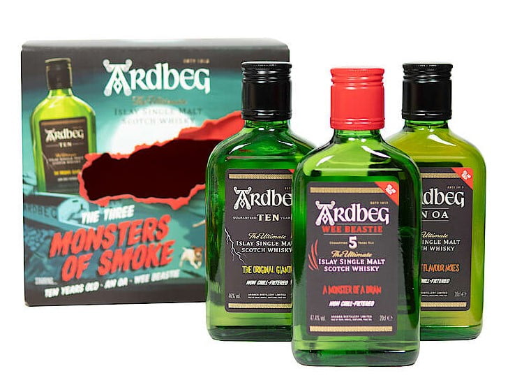 Containing a 20cl bottle each of Ardbeg's iconic smoky single-malt whiskies, the Monsters of Smoke trio unleashes flavour in a big way.