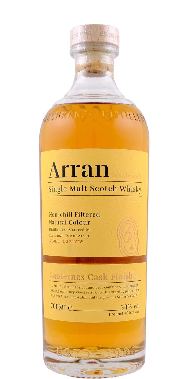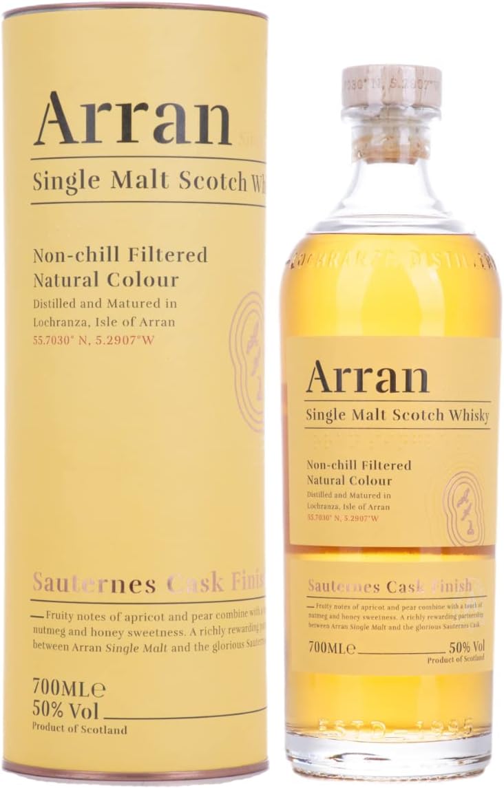 To achieve this rich partnership, their traditional Arran Single Malt is matured in oak casks for eight years and is then 'finished' in a selection of Sauternes wine casks.