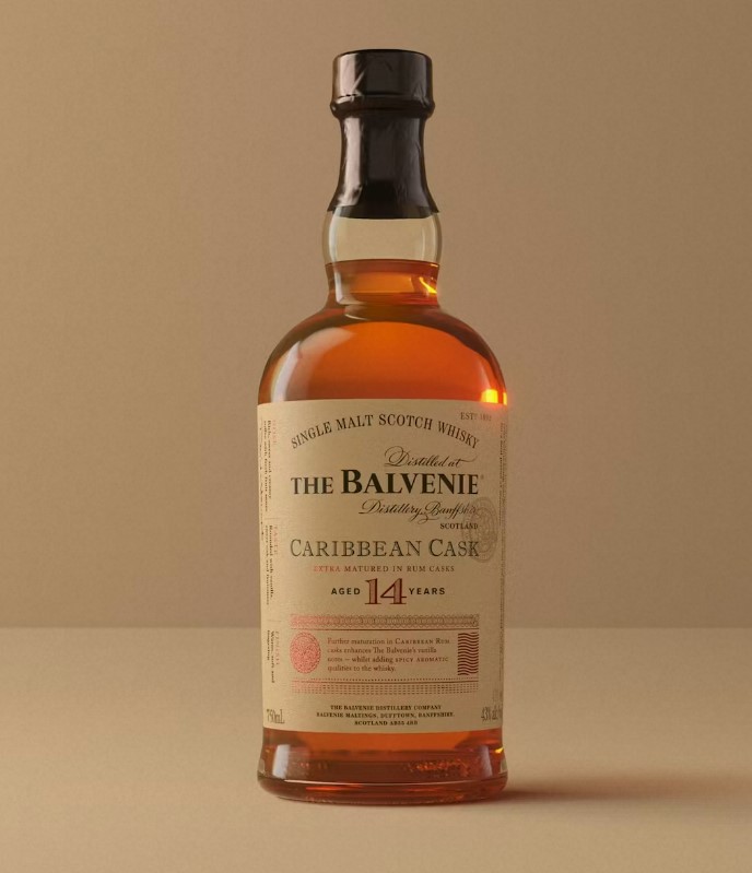 The Balvenie Caribbean Cask 14 year old single malt whisky has been matured in traditional oak whisky casks for 14 years, and then ‘finished’ in casks that previously held Caribbean rum.