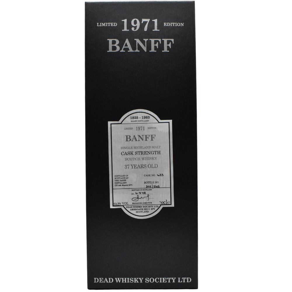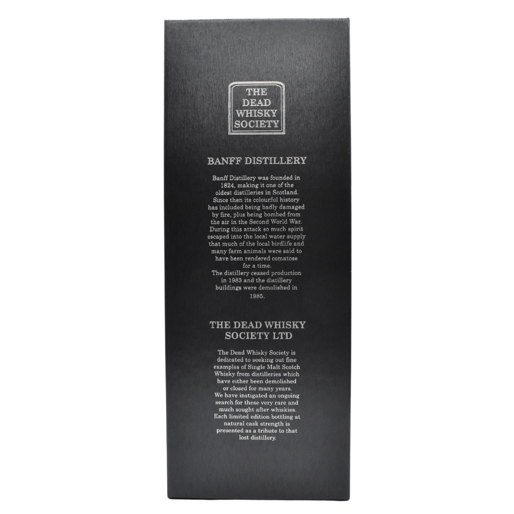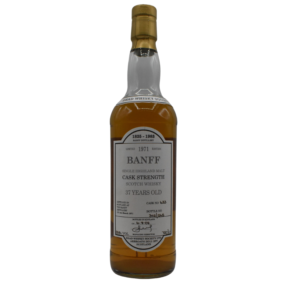 This very rare 37 year old Highland single malt was distilled at the Banff distillery on the 4th March 1971 and bottled by the Dead Whisky Society on the 6th August 2008.