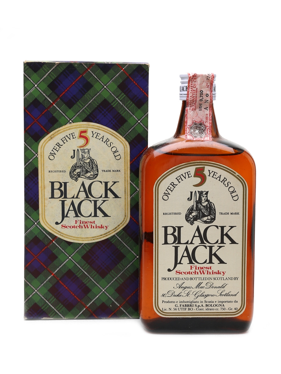 A bottle of Black Jack 5 Year Old Finest Scotch Whisky.