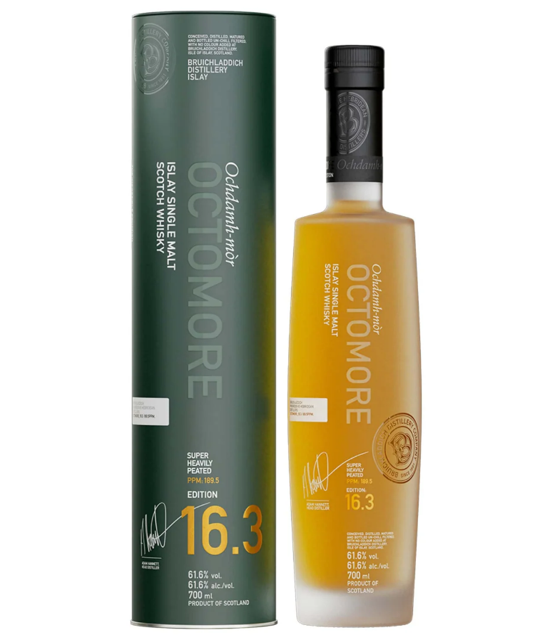 Octomore 16.3 is a showcase of single estate Islay barley, high peating levels and masterful cask maturation; the archetypal Octomore liquid.