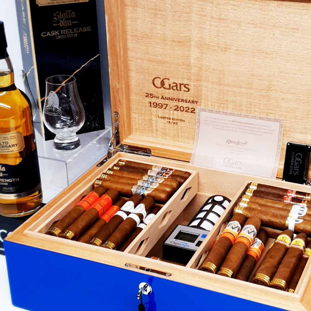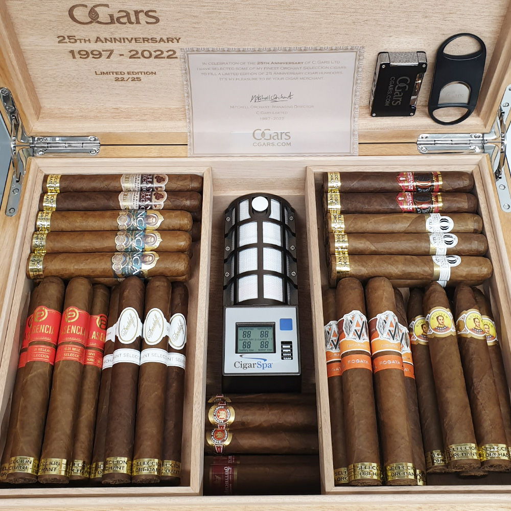 In celebration of the 25th Anniversary of C.Gars Ltd I have selected some of my finest Orchant Seleccion cigars to fill a limited edition of 25 Anniversary cigar humidors. It’s my pleasure to be your cigar merchant.
