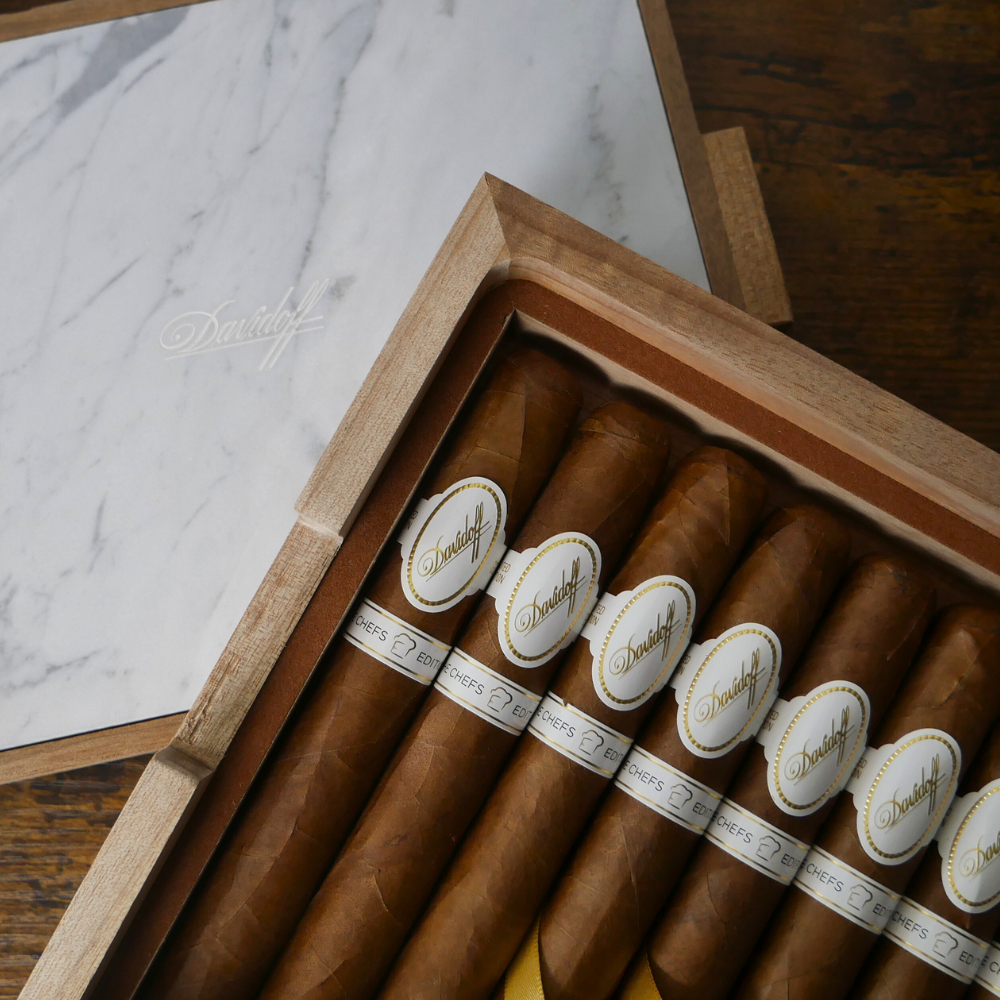 The Chefs Edition 2025 blend incorporates select tobaccos from Davidoff's iconic White Band Collection, mirroring the chef's signature lightness and finesse. To introduce fresh notes while enhancing complexity, Davidoff's Master Blenders meticulously experimented with a variety of tobaccos and ageing techniques.