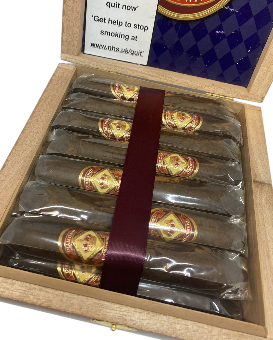 Featuring the same smooth and creamy binder and filler as the Diamond Crown Classic and a genuine Connecticut Broadleaf wrapper, the Diamond Crown Maduro is dark and oily with sweet and toasty flavours.