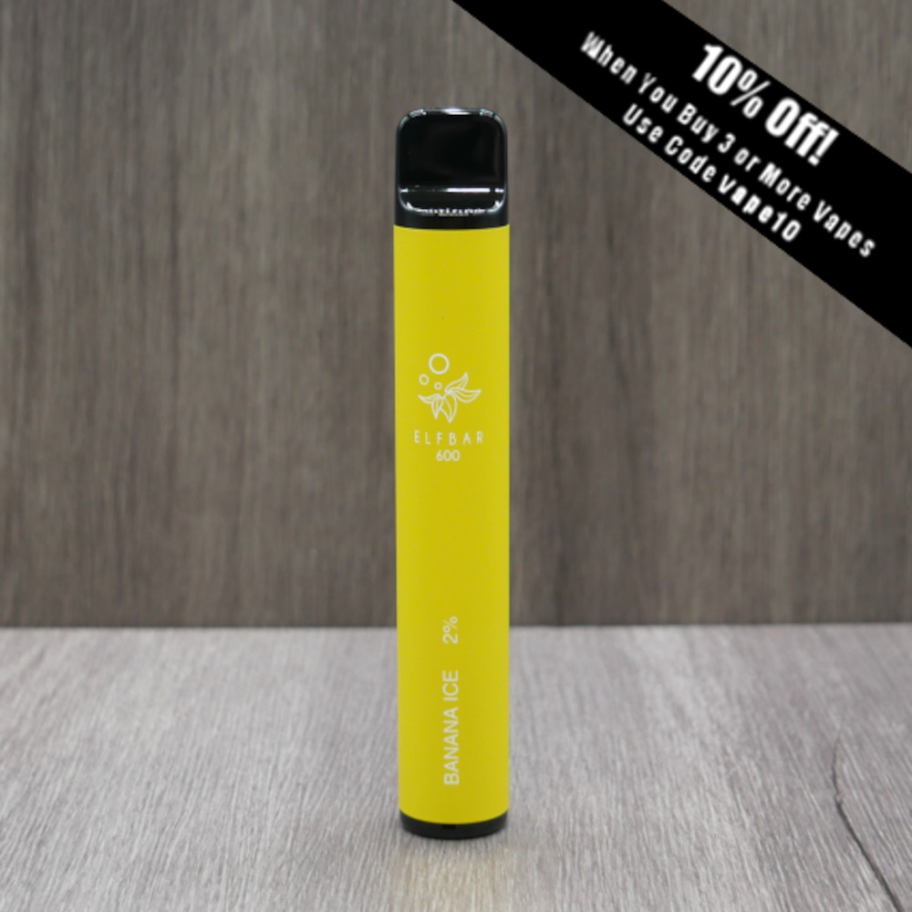 Elf Bar 600 Banana Ice Disposable Vape Bar is pre-filled with a 20mg nic salt in a deliciously fresh Banana Ice flavour.