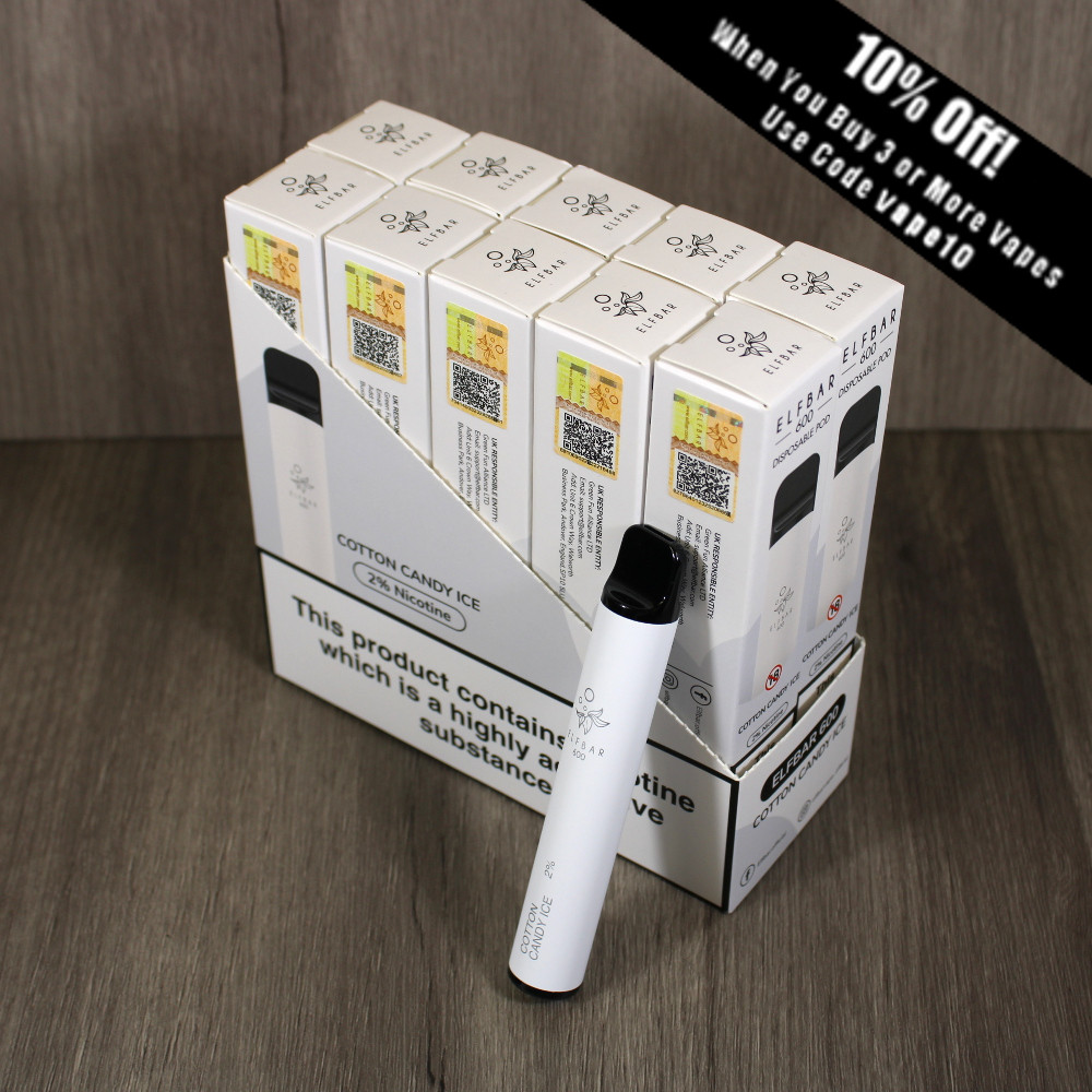 Elf Bar 600 Cotton Candy Ice Disposable Vape Bar is pre-filled with a 20mg nic salt in a sugary-sweet Cotton Candy flavour fused with a cooling blast of Ice.