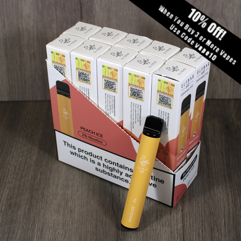 Elf Bar 600 Peach Ice Disposable Vape Bar is pre-filled with a 20mg nic salt in a luxuriously sweet Peach flavour mixed with cool Ice.