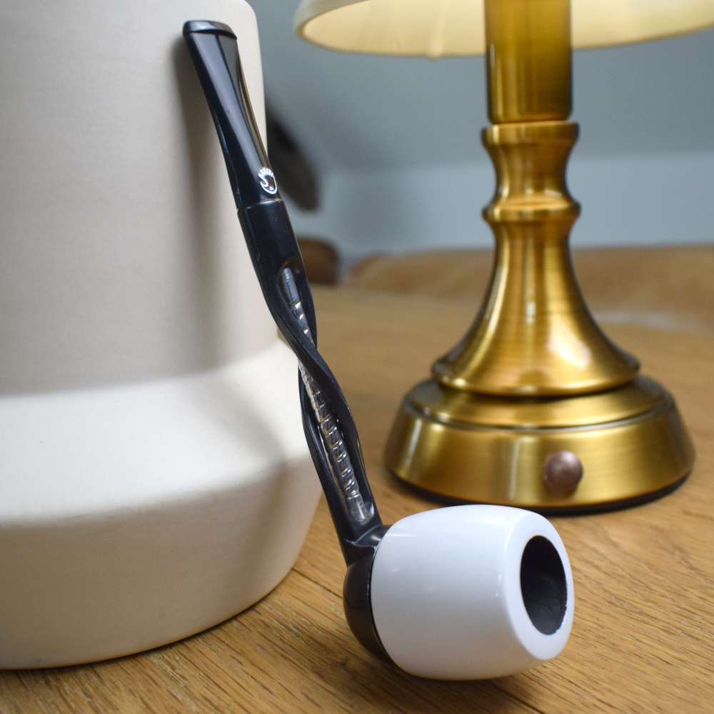 When used, the smoke is drawn through a hole in the bottom of the bowl into the metal humidome below where the moisture collects, creating a dryer smoke. The smoke is then cooled as it passes through the metal stem. As the bowls are removable, they can be unscrewed during smoking to remove any moisture in the humidome and then screwed back on to continue smoking.