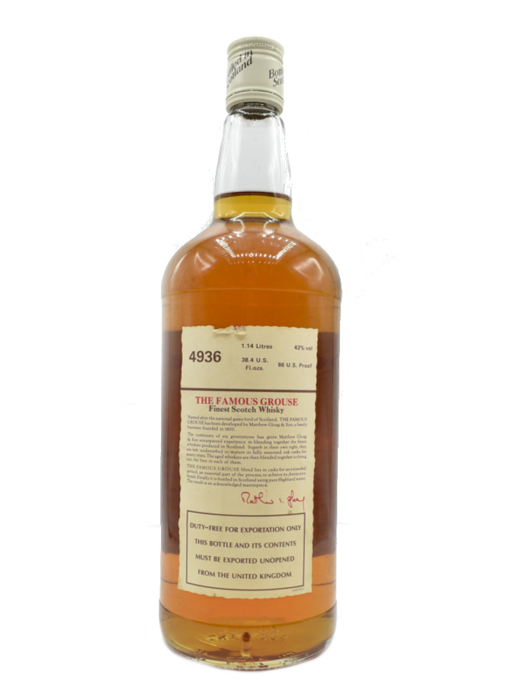 The single malt whiskies used in The Famous Grouse blend include the Edrington-owned Highland Park and The Macallan. Its emblem is the Red Grouse, Scotland's national game bird.