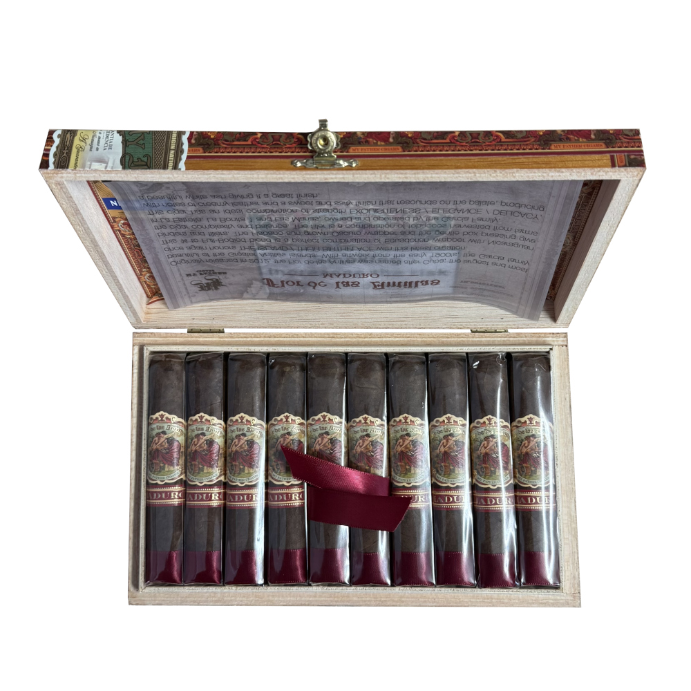 The Habano sun grown Oscuro wrapper and the gentle box pressing give the cigar complexity and balance. The filler is a combination of tobaccos harvested from farms in La Estrella, La Bonita 1 and Las Marias, owned and operated by the Garcia Family. This cigar has an ideal combination of strength and delicacy with notes of creamy leather and a sweet and salty finish that resounds on the palate, producing a beautiful white ash giving it a great finish.