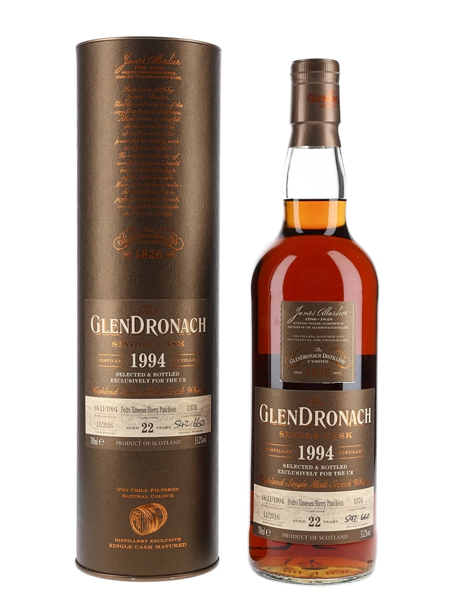 This was distilled on 18 November 1994, where for over 22 years this amazing Single Malt from Glendronach has been matured in their warehouses in a single Pedro Ximenez Sherry Puncheon.