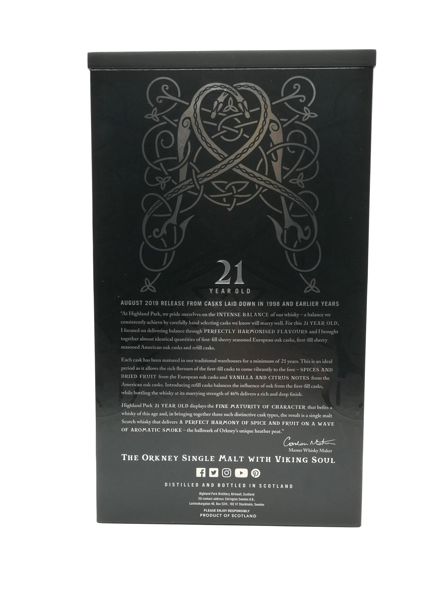This 21 Year Old displays the fine maturity of character that befits a whisky of this age and delivers a perfect harmony of spice and fruit on a wave of the aromatic smoke that is the hallmark of Orkney’s unique heather peat.