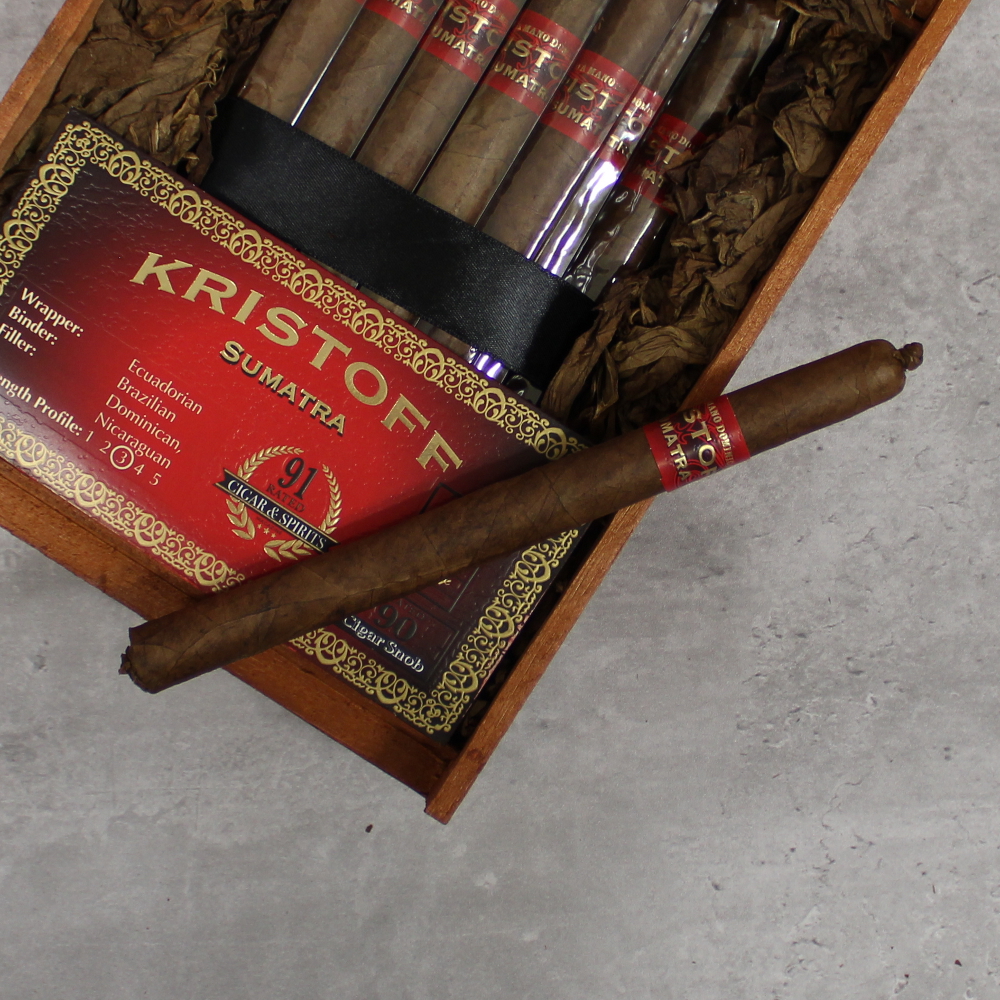 The Kristoff Sumatra is a medium bodied cigar with velvety floral notes, spice, cinnamon and a smooth sweet finish. This very traditional Cuban flavor will have you feeling like you’ve been transported back to old world Cuba.