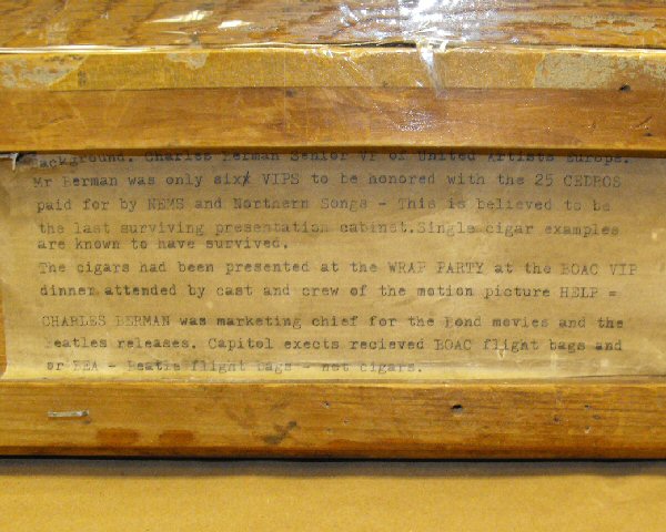 Mr Berman was only 6 VIPs to be honoured with the 25 CEDROS paid for by NEMS and Northern Songs - this is believed to be the last surviving presentation cabinet. Single cigar examples are known to have survived.