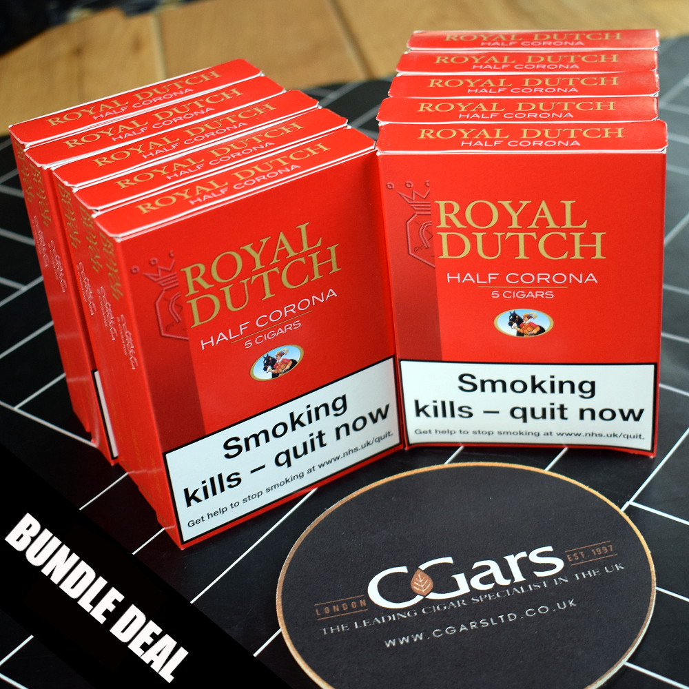 Royal Dutch Half Corona cigars, a flavourful and aromatic modern take on a classic cigar offering a rich flavoursome smoking experience, in a compact format. They do not require cutting and can be enjoyed straight out of the box.