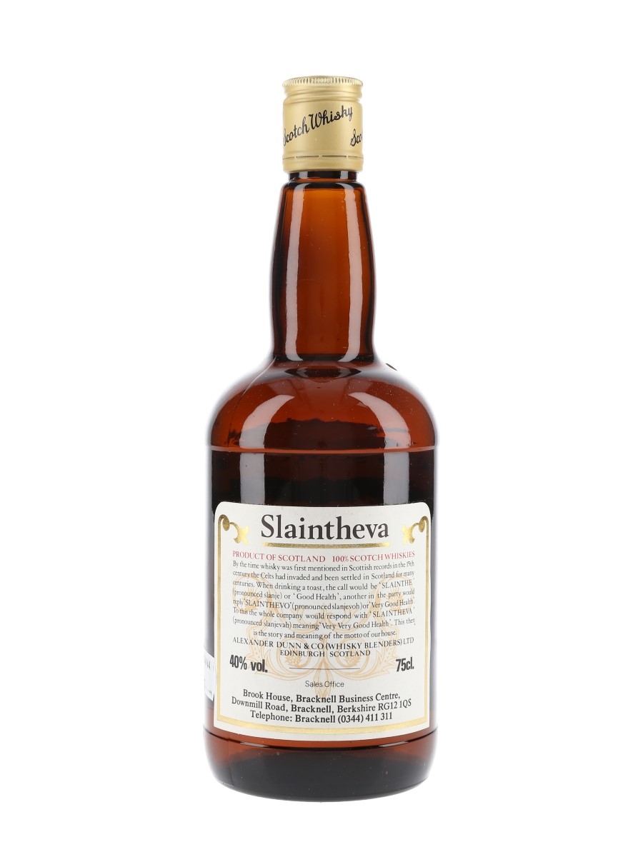 A bottle of Slaintheva 12 Year Old Blended Scotch whisky, bottled by Alexander Dunn & Co. Ltd