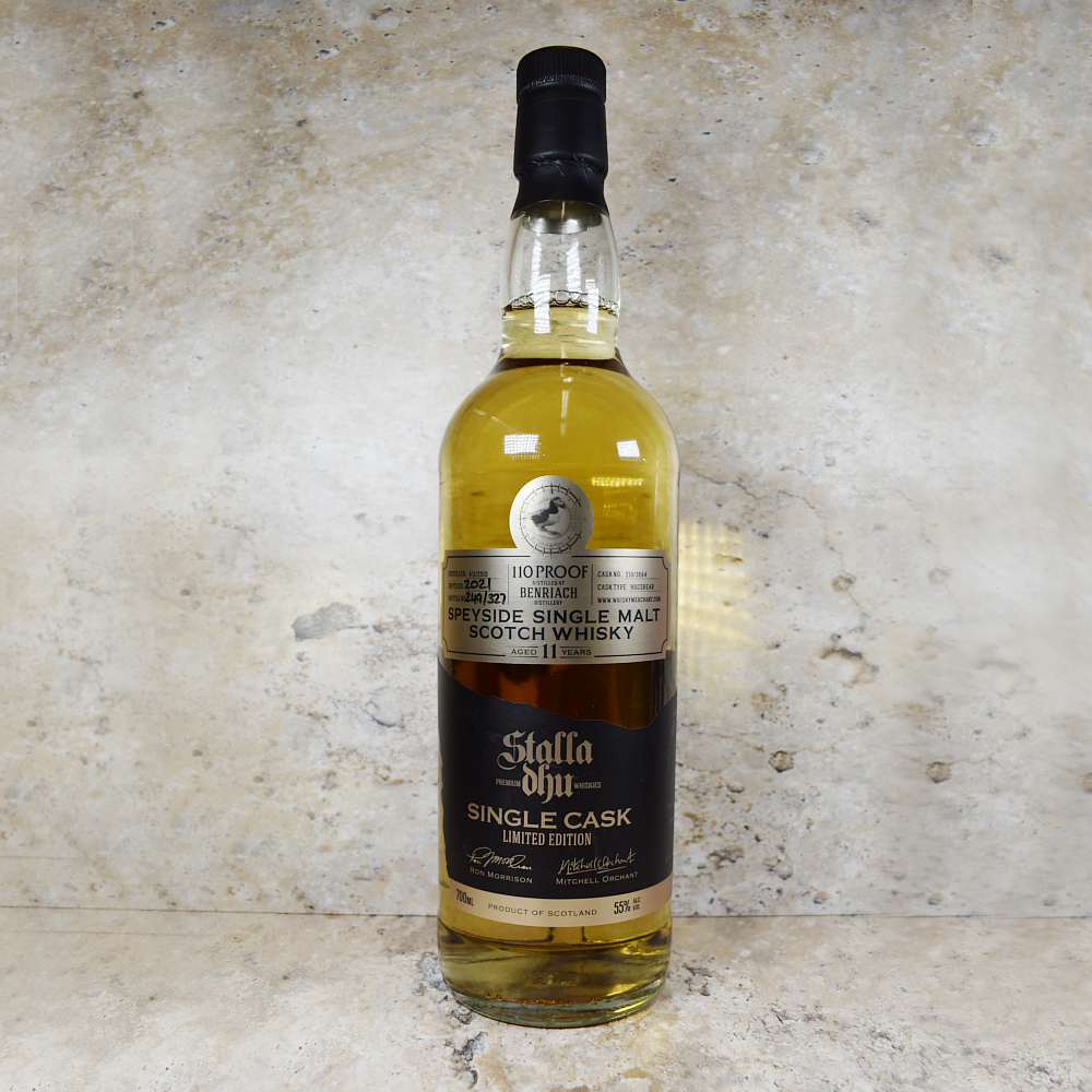 An 11-year-old single cask release of Benriach, distilled in 2010 and bottled in 2021 at the impressive abv of 55% (110 proof) for an added kick.