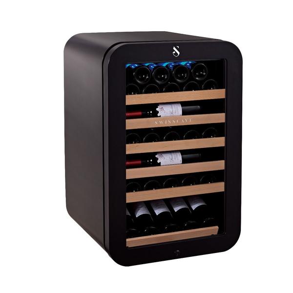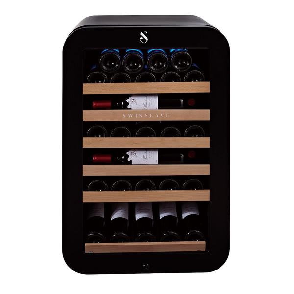 SWISSCAVE's brand new Black Edition built in or freestanding undercounter unit with a capacity of 43 Bordeaux bottles. It features a simple and striking black design with black anodized steel handle, this unit blends into your home or in restaurants.