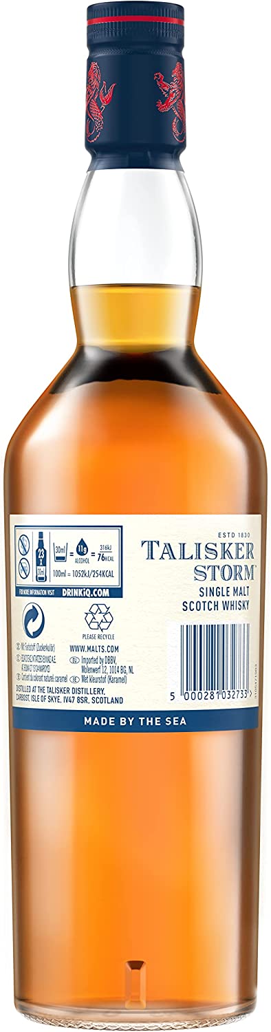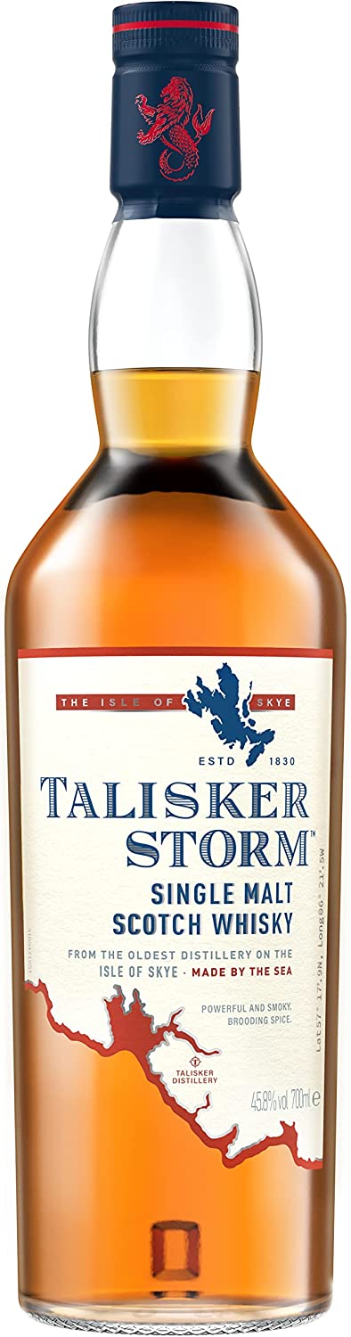 Made by the sea on the rugged Isle of Skye, Talisker Storm is a dark, smoky, brooding whisky with notes of wood, brine & spice that puts you right at the heart of a storm at sea
