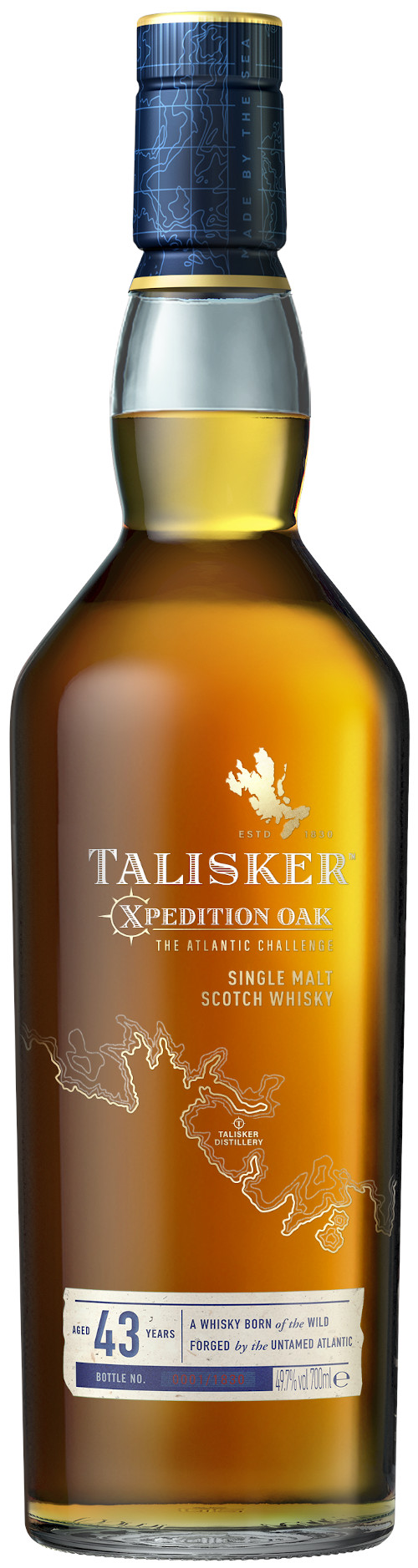 fter being aged for over 4 decades, the Talisker 43 Year Old Xpedition Oak was finally finished in casks constructed of the staves that traversed the harsh and beautiful elements of the Atlantic with wild spirit James Aiken – this is Talisker’s finest expression of Made by the Sea to date.