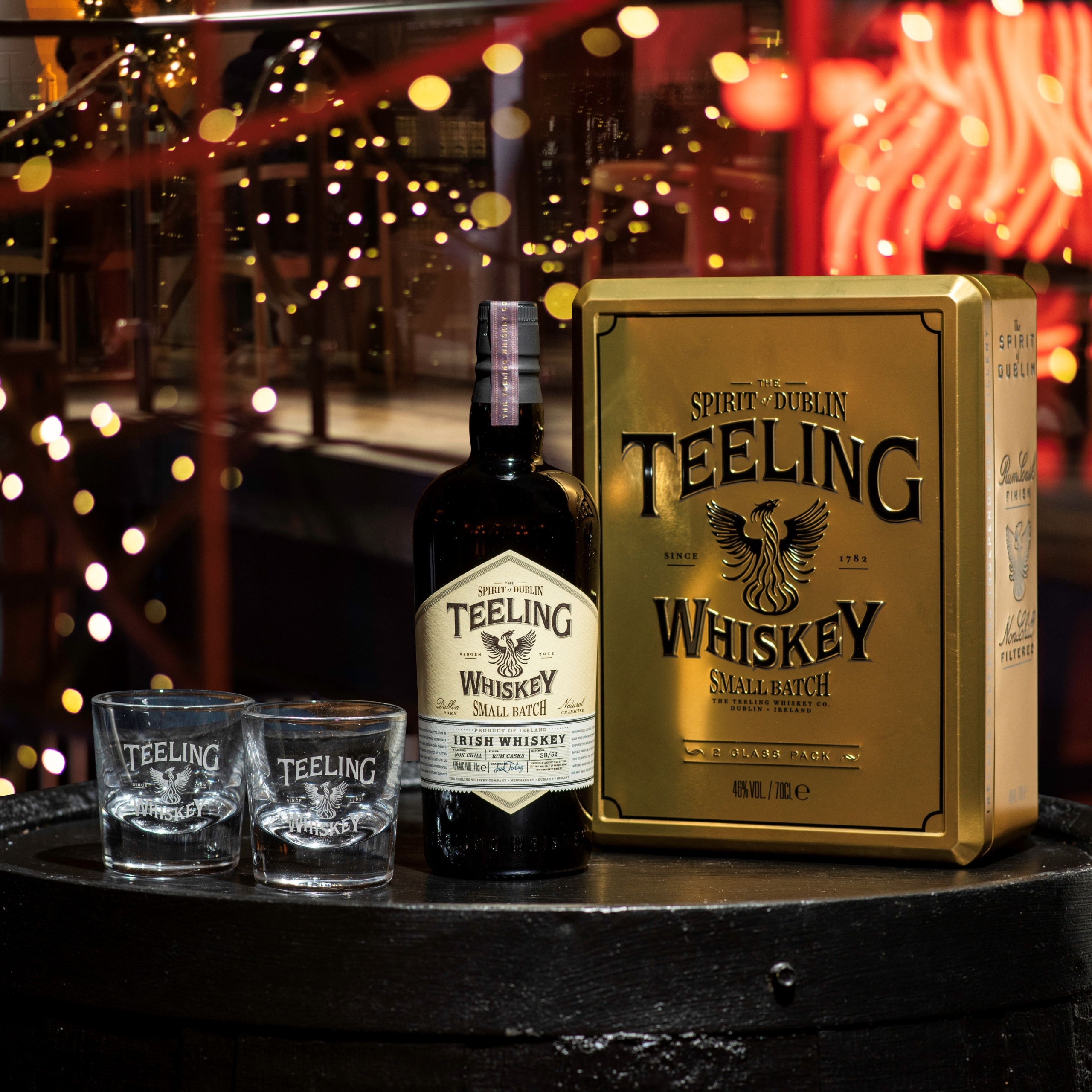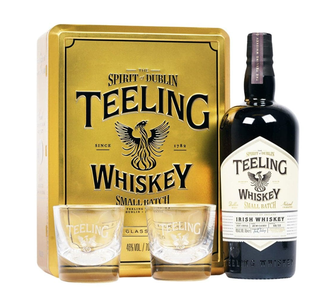 This premium Gold Gift Pack includes our award-winning Teeling Small Batch whiskey and 2 Teeling tumblers.