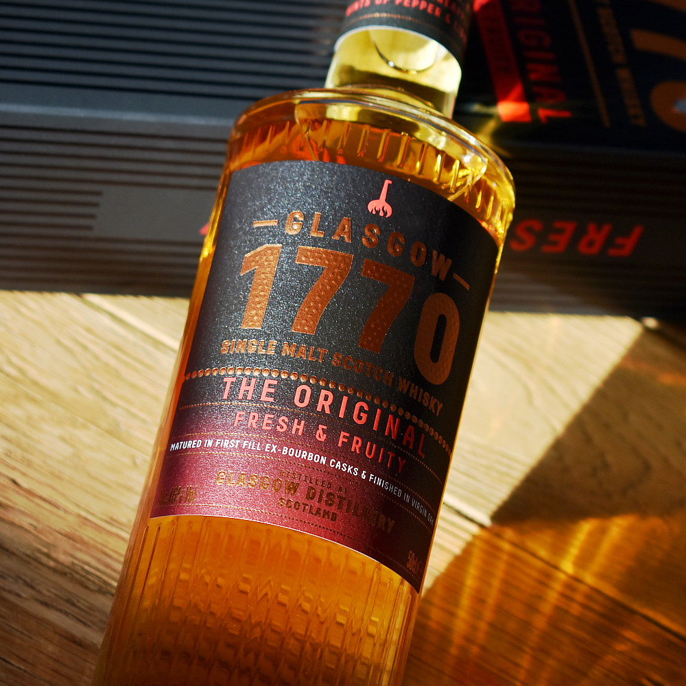 Glasgow 1770 The Original - 46% 50cl - The slow distillation used at the distillery brings a fruity and sweet new make spirit which is matured in first fill ex-bourbon casks before a finishing period in virgin American oak barrels. The resulting liquid is fruity and smooth with notes of berries, vanilla, pear and honey and a spicy finish.