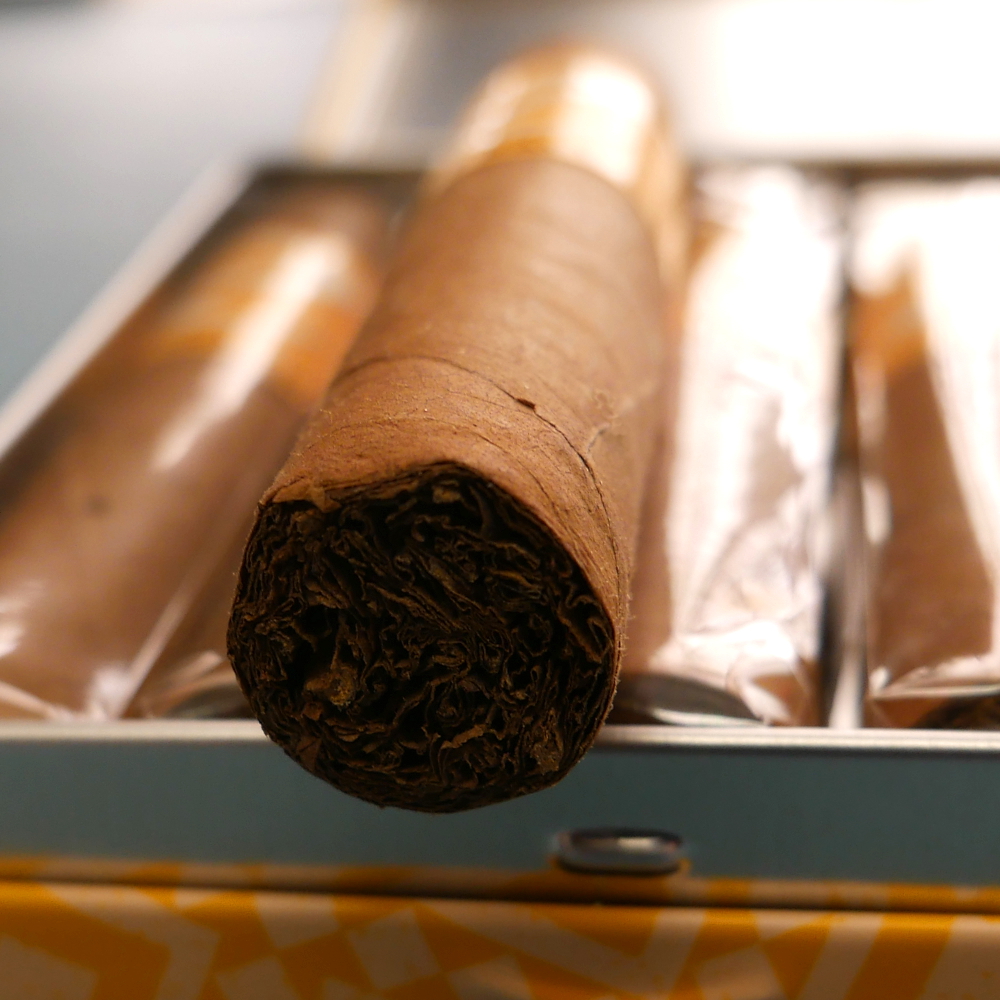 The blend comprises an Ecuadorian Connecticut wrapper, a Seminal 56 seco binder cultivated in Nicaragua, and fillers that encompass Honduran visus from Olancho and Jamastran, Nicaraguan visus from Ometepe, and Dominican San Vicente and San Vicente Mejorado secos.